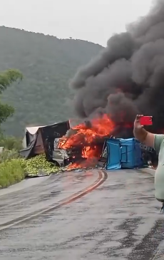 - Duas carretas bateram de frente e pegaram fogo na BR-101, em Joaquim Gomes, Alagoas